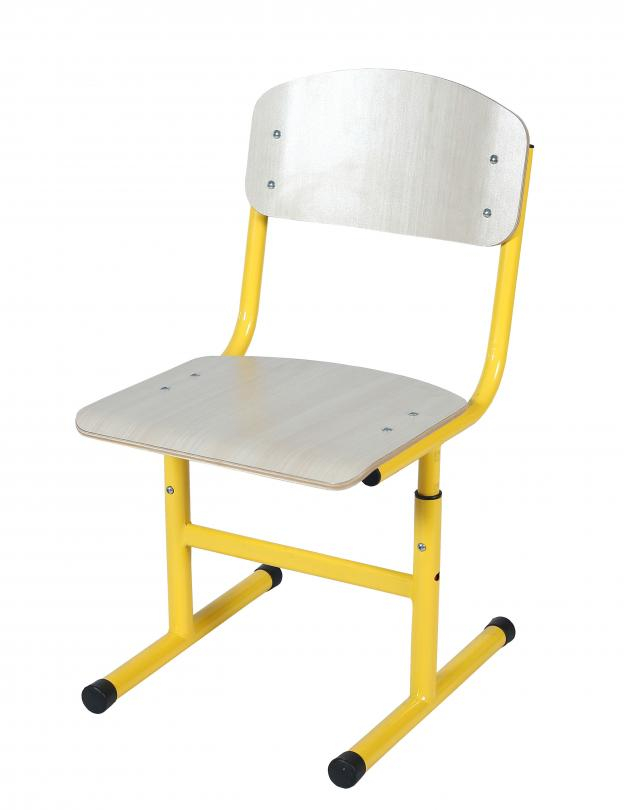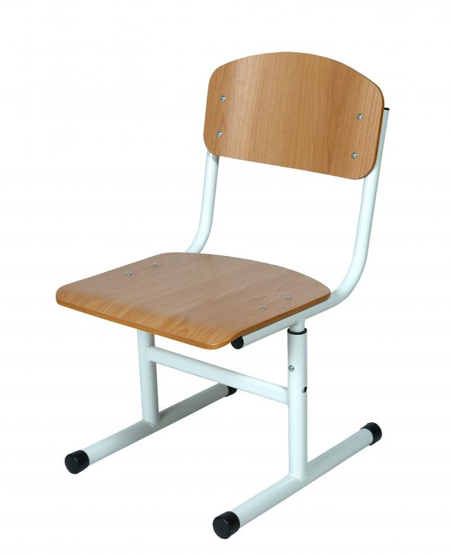 Scaunul este format din scaun suprapus, spătar și cadru metalic. Scaunul și spătarul scaunului sunt realizate din placaj lipit îndoit cu grosimea de 8-9 mm și sunt acoperite cu plastic HPL cu grosimea de 0,4-0,5 mm. Marginile scaunului și spătarul scaunului au o rază de rotunjire pentru a preveni rănirea. Cadrul metalic este realizat din tuburi rotunde de 25 mm și 32 mm în diametru. Cadrul este acoperit cu vopsea pulbere. Ajustarea înălțimii este implementată prin cusătura cu șurub a piuliței cu șurub cu fixare a piuliței de acoperire în interiorul tubului pentru imposibilitatea de deșurubare în cursul spargerii. Vârfurile din plastic sunt fixate la capetele cadrului pentru a preveni rănirea studenților și deteriorarea podelei. În locurile de reglare a înălțimii există un manșon de tranziție din plastic, care asigură netezimea ajustării, elimină scârțâitul și zgârieturile în timpul ajustării înălțimii. Fixarea scaunului și a spătarului scaunului pe cadrul scaunului este implementată cu ajutorul șuruburilor de formă specială de tip ciupercă și a piulițelor de formă rotunjită, care împiedică rănirea și deteriorarea hainelor. Pe partea inferioară a cadrului metalic există o gaură prin care se poate vedea un marcaj al grupurilor de înălțime, în timp ce se reglează înălțimea scaunului. Marcajul de culoare în conformitate cu grupele de înălțime se aplică sub forma unui cerc de cel puțin 10 mm. De asemenea, pe cadrul metalic se aplică o scală de marcare a grupurilor de înălțime folosind gravura cu laser. Culori cadru: gri, galben, verde Culori HPL: fag, stejar lăptos, iasomie, albastru, gri, bej, liliac.