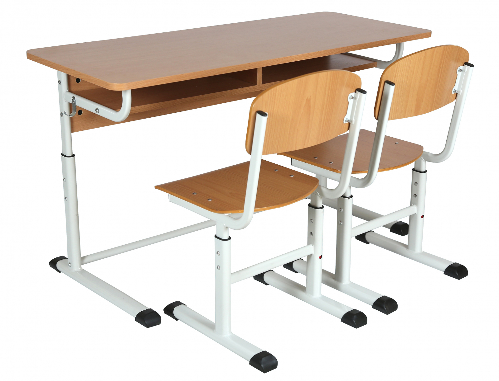 Masa poate fi reglata în înălțime: 640 mm (nr.), 700 mm (No5), 760 mm (No6) și 820 mm (No7). Masa constă din cadru metalic și piese din PAL laminat. Piese metalice de masă pentru elevi sunt fabricate din tuburi plate-oval 50х30,2 mm, 38х20,2 mm și 30х15х1,2 mm în dimensiune și tuburi rotunde cu diametrul de 25 mm .Dimensiunea spatelui scaunului: 380х200 mm. Dimensiunea scaunului: 380х350 mm. Scaunul este destinat mobilării sălilor de instruire ale instituțiilor de învățământ. Scaunul poate fi reglat în înălțime: 380 mm (nr.4) – pentru elevii cu înălțime de la 1450 mm până la 1600 mm; 420 mm (no5) – pentru elevii cu înălțime de la 1600 mm până la 1750 mm; 460 mm (nu) – pentru elevii cu înălțime de la 1750 mm; 500 mm (no7) – pentru elevii cu înălțime mai mare de 1850 mm. Scaunul este format din scaun suprapus, spate de scaun și cadru metalic: lățime – 391 mm; adâncime – 485 mm; înălțime – 740, 780, 820, 820, 860 mm; înălțime până la baza superioară a scaunului – 380, 420, 460, 500 mm. Scaunul și spatarul scaunului sunt realizate din placaj lipit îndoit de grosime de 8-9 mm și sunt acoperite cu plastic HPL de o grosime de 0,4-0.5 mm.