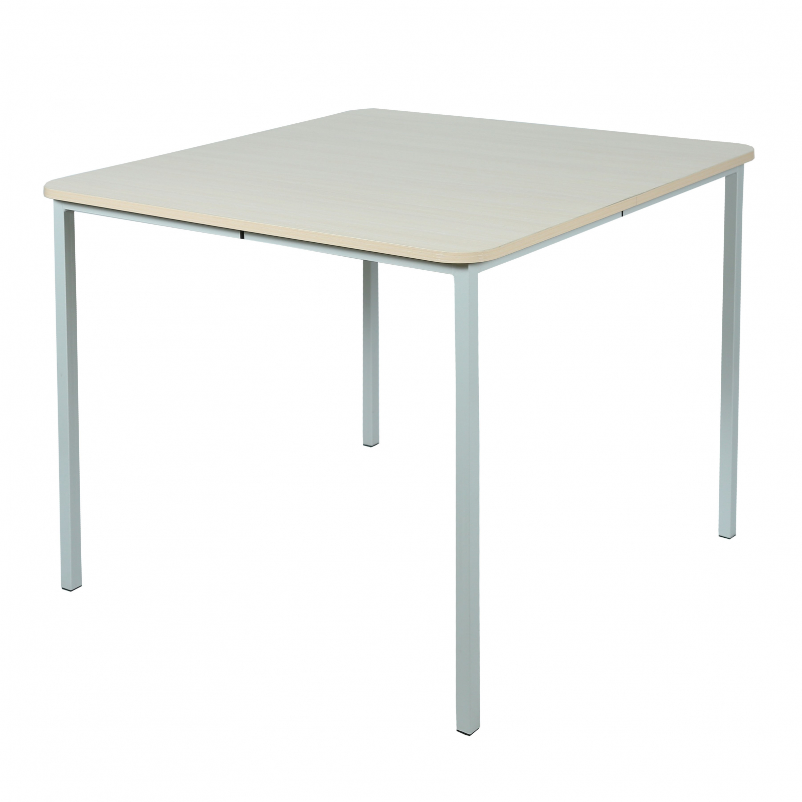 Cadrul este realizat dintr-un tub metalic pătrat 25x25 Masă pătrată cu 4 locuri pentru săli de mese, grup de înălțime №de 6, mm în dimensiune și de 1,2 mm grosime. Acoperirea se aplică prin pulverizarea materialelor polimerice sub formă de pulbere. Suprafața mesei este cu colțuri rotunjite și este realizată din plăci aglomerate laminate de 18 mm. Marginile elementelor din lemn sunt finisate cu bandă de margine din PVC de 2 mm grosime.Culori de tablă: fag, stejar lăptos, gri. Culori cadru: gri, galben, verde.