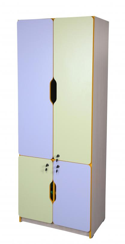 Dulap cu compartiment cu rafturi închise, care sunt destinate depozitării ajutoarelor didactice, a cărților, a dosarelor, a bunurilor personale ale elevilor și a profesorului și a locului pentru îmbrăcăminte exterioară cu bară glisantă. În partea de jos sunt 2 compartimente cu tăvi și locul pentru depozitarea lucrurilor.