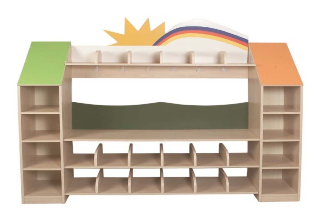 Acest dulap cu cârlige este proiectat pentru a oferi un spațiu organizat și accesibil pentru păstrarea hainelor și a echipamentelor personale ale copiilor. Cu un design vesel și culori atrăgătoare, dulapul nu doar că îmbunătățește aspectul estetic al sălii de clasă, dar și creează un mediu prietenos pentru copii.