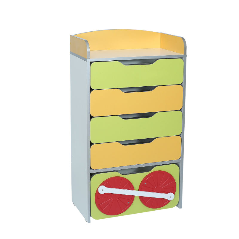 Sertarele sunt realizate din pal laminată cu grosimea de 16 mm. Petele din spate este realizat din MDF alb unilateral de o grosime de 2,5 mm. Marginile frontale sunt finisate cu bandă de margine din PVC de o grosime de 1 mm; marginile altor părți sunt finisate cu bandă de margine din PVC de o grosime de 0,5 mm de culoare "aluminiu". Frontul este decorat cu suprapuneri tematice MDF de culori roșii și albe.