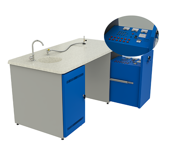 Această masă de laborator este proiectată special pentru realizarea experimentelor de fizică, având un blat de lucru din material rezistent și ușor de curățat. Echipată cu un panou de control intuitiv, aceasta permite utilizatorilor să gestioneze diferite experimente cu ușurință. Include un chiuvetă integrată pentru spălarea echipamentului și conectivitate pentru aparate electrice. Designul robust și funcționalitatea avansată o fac ideală pentru mediile academice și de cercetare, asigurând un mediu de lucru eficient și organizat.