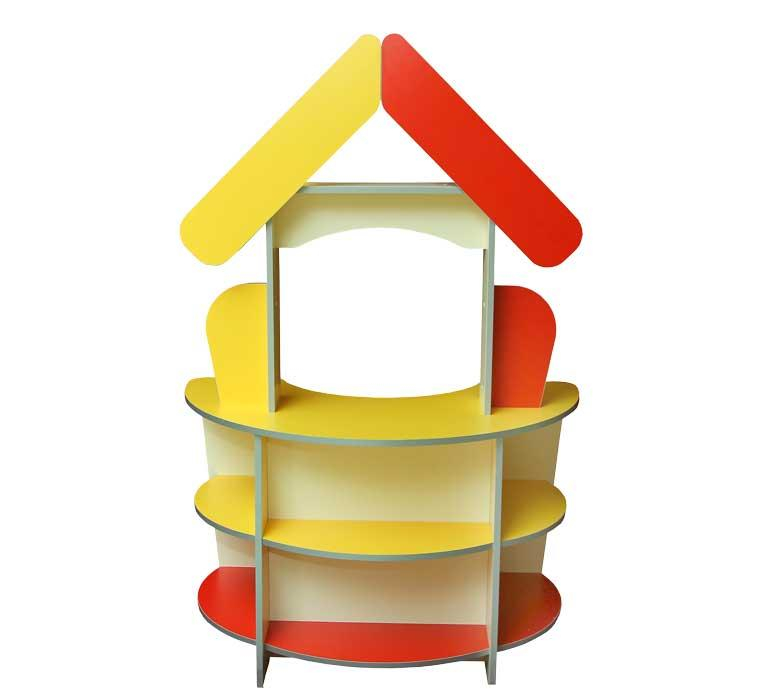 Magazinul de joacă pentru copii. Ocolul și rafturile sunt realizate din un pui laminat de grosime de 16 mm. Marginile vizibile sunt finisate cu bandă de margine din PVC de o grosime de 1 mm, marginile altor piese sunt finisate cu bandă din PVC de grosime de 0,5 mm.