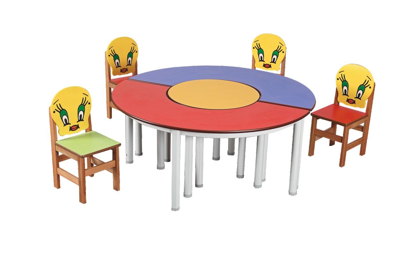 Acest set de mobilier este perfect pentru sălile de clasă, grădinițe sau spații de joacă, oferind un mediu vesel și stimulativ pentru activitățile de învățare și joacă. Masa rotundă facilitează interacțiunea între copii, fiind ideală pentru jocuri de grup, activități de artă sau mese comune.