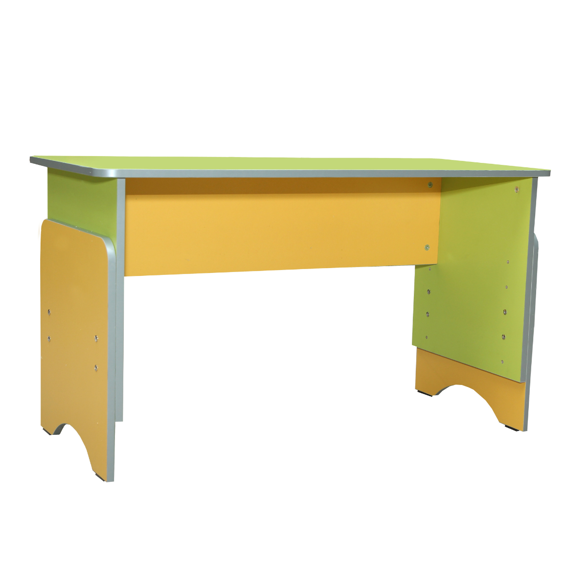 Masa este realizată din carton laminat colorat de 16 mm grosime. Tabletop are colţuri rotunjite. Marginile meseriei sunt finisate cu bandă de margine din PVC de grosime de 1 mm. Marginile altor piese sunt finisate cu bandă de margine din PVC de grosime de 0,5 mm