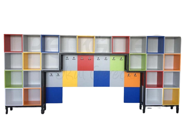 Acest dulap compartimentat este conceput pentru a oferi un sistem de organizare eficient pentru elevi, copii, ajutându-i să își păstreze hainele, ghiozdanele și alte obiecte personale în ordine. Cu un design modular și culori vibrante, dulapul nu doar că îmbunătățește aspectul estetic al sălii de clasă, ci și încurajează responsabilitatea în rândul elevilor.