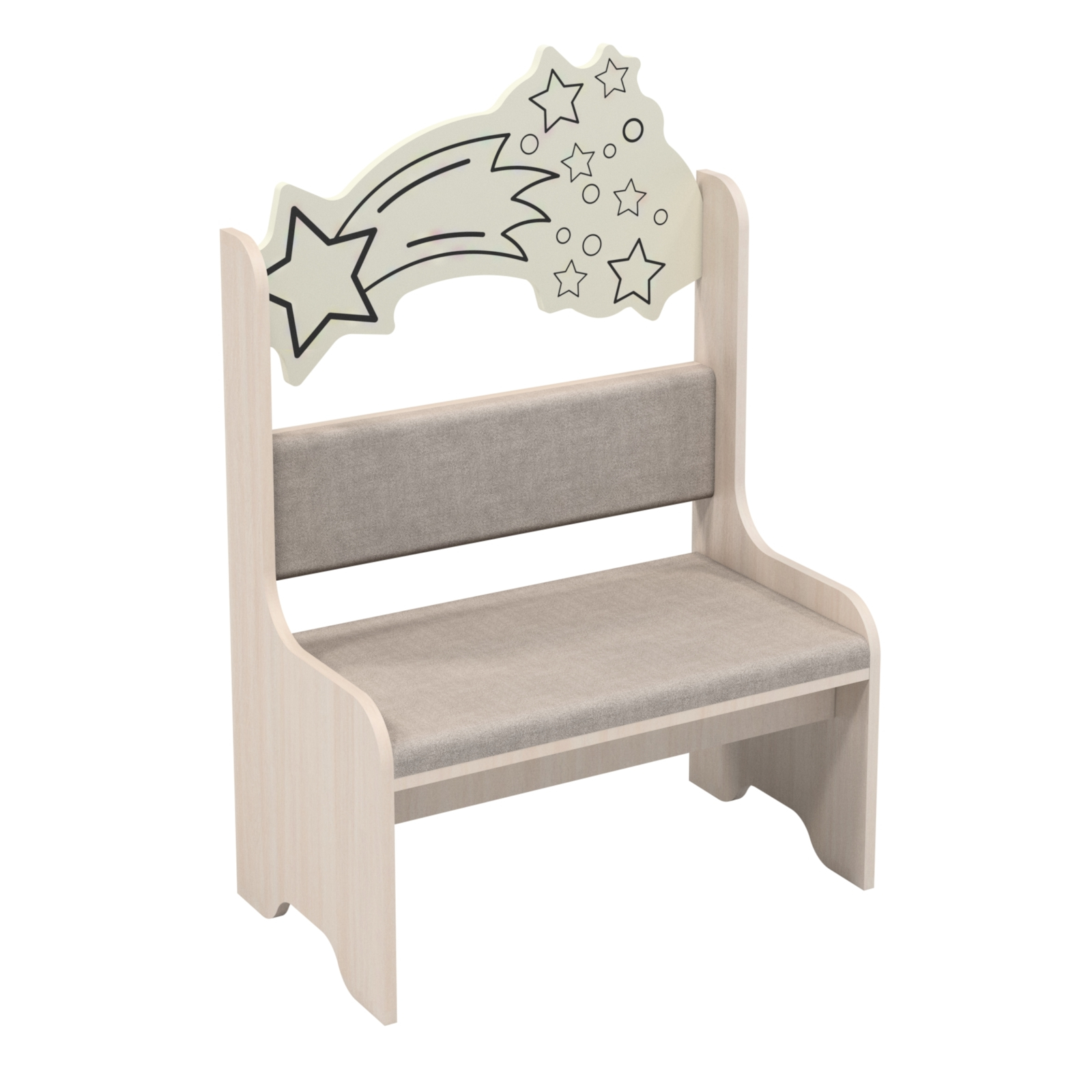 Banca este fabricată din pal laminat de o grosime de 16 mm. Banda decorativă este fabricată din MDF de o grosime de 16 mm. Marginea din față a băncii este finisată cu bandă de margine din PVC de o grosime de 1 mm, marginile altor părți sunt finisate cu bandă din PVC de grosime de 0,5 mm. Imprimarea fotografiei se efectuează pe PAL folosind cerneluri speciale care se întăresc sub acțiunea lămpilor speciale cu ultraviolete. Pictura în sine este, de asemenea, acoperită cu lac pentru a crește rezistența sa la deteriorarea externă, abraziunea și curățarea umedă. Scaunul spate și scaunul sunt umplute cu spumă de o grosime de 30 mm și sunt acoperite cu țesătură.