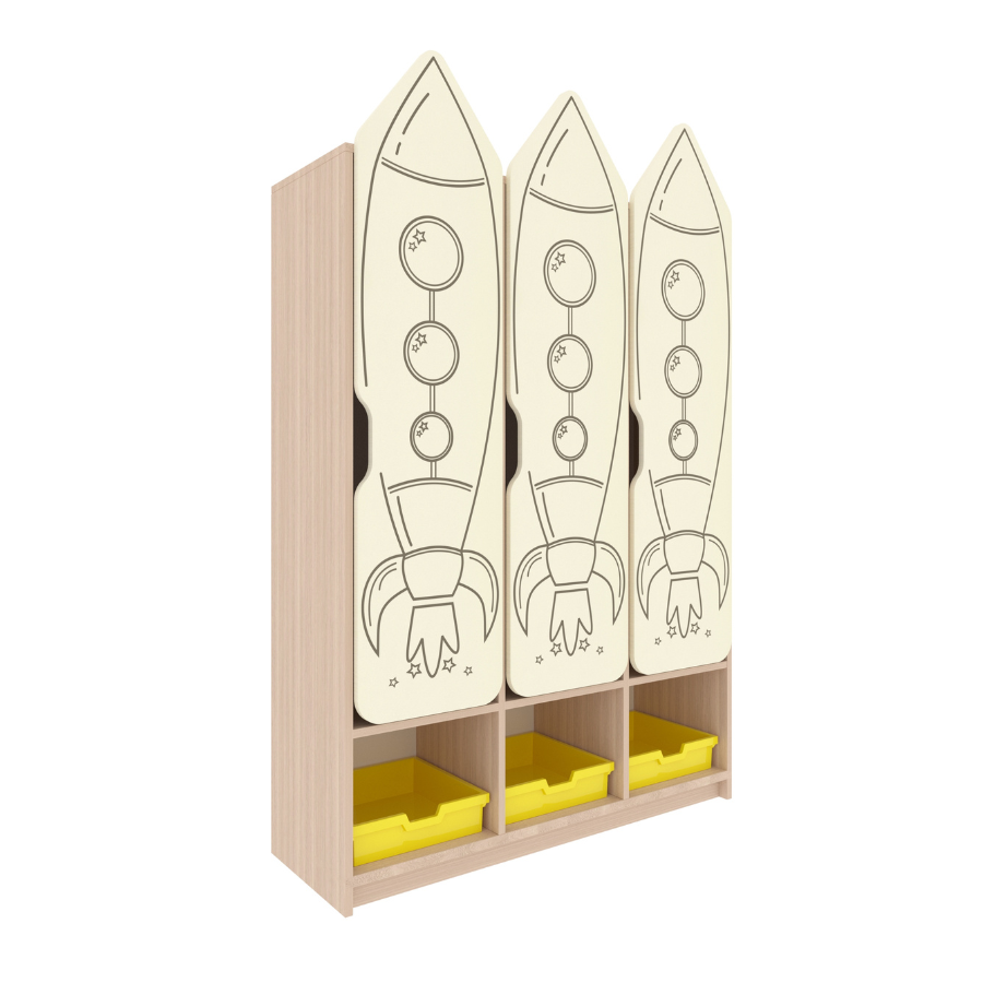 Marginile frontale sunt finisate cu bandă de margine din PVC de o grosime de 1 mm, marginile altor piese sunt finisate cu bandă de margine din PVC de 0,5 mm grosime. Peretele din spate este realizat din HDF alb unilateral de o grosime de 2,5 mm. Fiecare compartiment închis are un raft de pălării și două cârlige. Dulapul este echipat cu tăvi de plastic. Imprimarea fotografiei se efectuează pe PAL folosind cerneluri speciale care se întăresc sub acțiunea lămpilor speciale cu ultraviolete