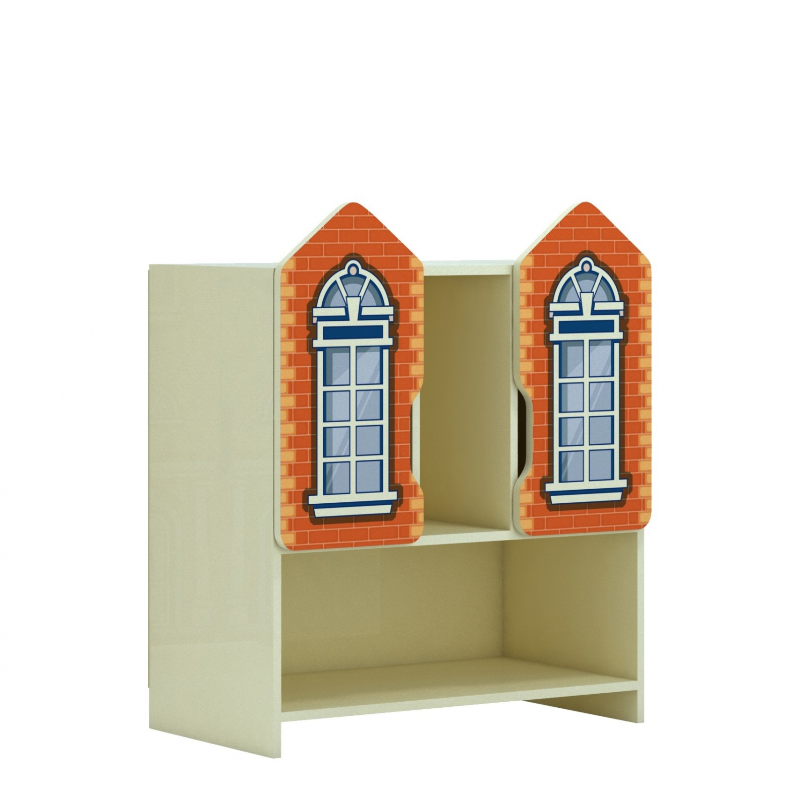 Învelișul de perete, rafturile și ușile sunt realizate din un pasa laminat de grosime de 16 mm. Marginile frontale sunt finisate cu bandă de margine din PVC de o grosime de 1 mm, marginile altor piese sunt finisate cu bandă de margine din PVC de 0,5 mm grosime. Peretele din spate este realizat din HDF alb unilateral de o grosime de 2,5 mm. Cabinetul are 2 rafturi închise și 2 deschise. Imprimarea fotografiei se efectuează pe PAL folosind cerneluri speciale care se întăresc sub acțiunea lămpilor speciale cu ultraviolete. Pictura în sine este, de asemenea, acoperită cu lac pentru a crește rezistența sa la deteriorarea externă, abraziunea și curățarea umedă