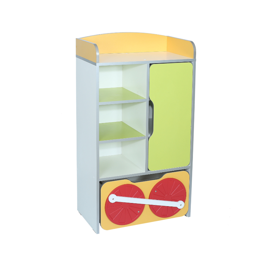 Învelișul, rafturile, ușa și partea din față a sertarului sunt realizate din o grosime laminată de 16 mm grosime. Petele din spate este realizat din HDF alb unilateral de o grosime de 2,5 mm. Fațada este acoperită cu bandă de margine din PVC de o grosime de 1 mm; alte părți sunt acoperite cu bandă de margine din PVC de grosime de 0,5 mm de culoare "aluminiu". Frontul este decorat cu suprapuneri tematice MDF de culori roșii și albe. 620x3x3x1130 mm