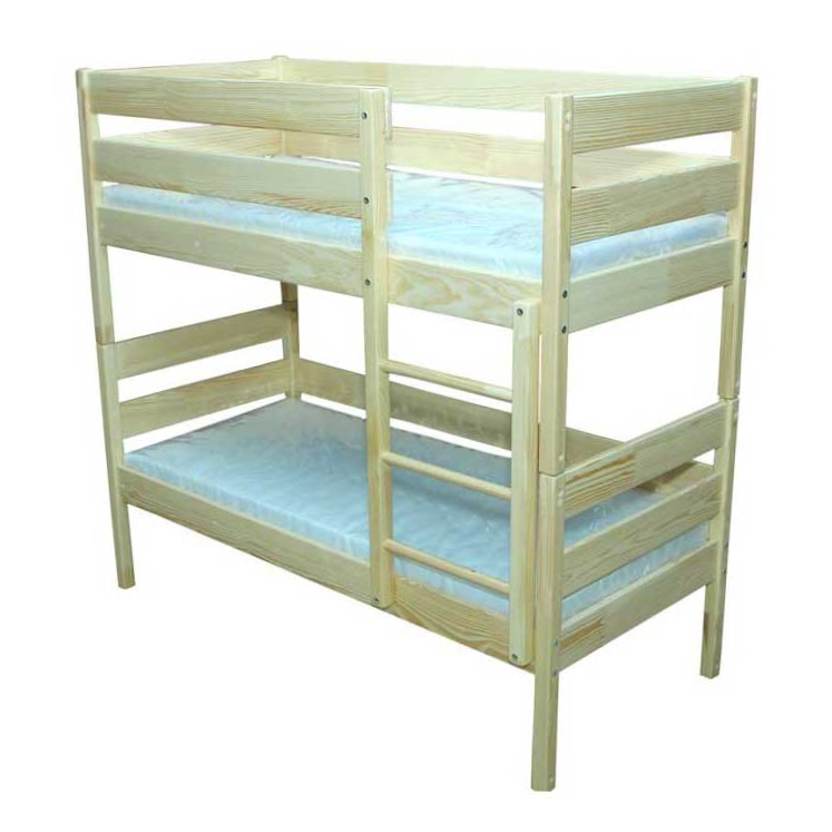 Patul pentru copii este format din pereți laterali, tăblii și dană. Peretele laterale și plăcile sunt realizate din plăci de pin late cu grosime de 18 mm. Rafturile de pat sunt realizate din lemn de pin 40x40 mm în dimensiune. Legarea patului (umplutura interioară) este realizată din greble de pin de o grosime de 18 mm. Cușetele patului sunt lamele cu grosimea de 8 mm. Dispozitivele de fixare (șoimi, șuruburi euro) au un strat decorativ de protecție. Patul este format din două paturi universale care pot fi asamblate într-un pat supraetajat folosind un set de jumperi și o scară.