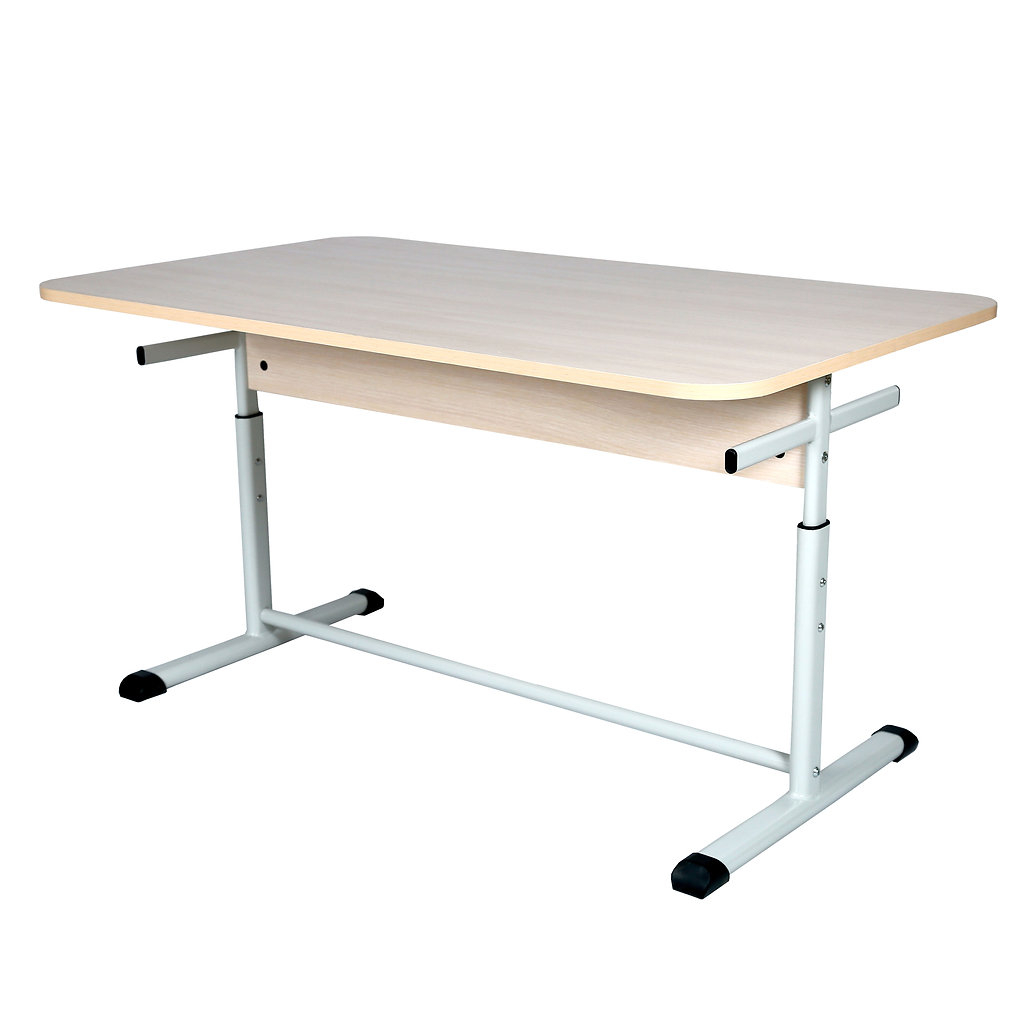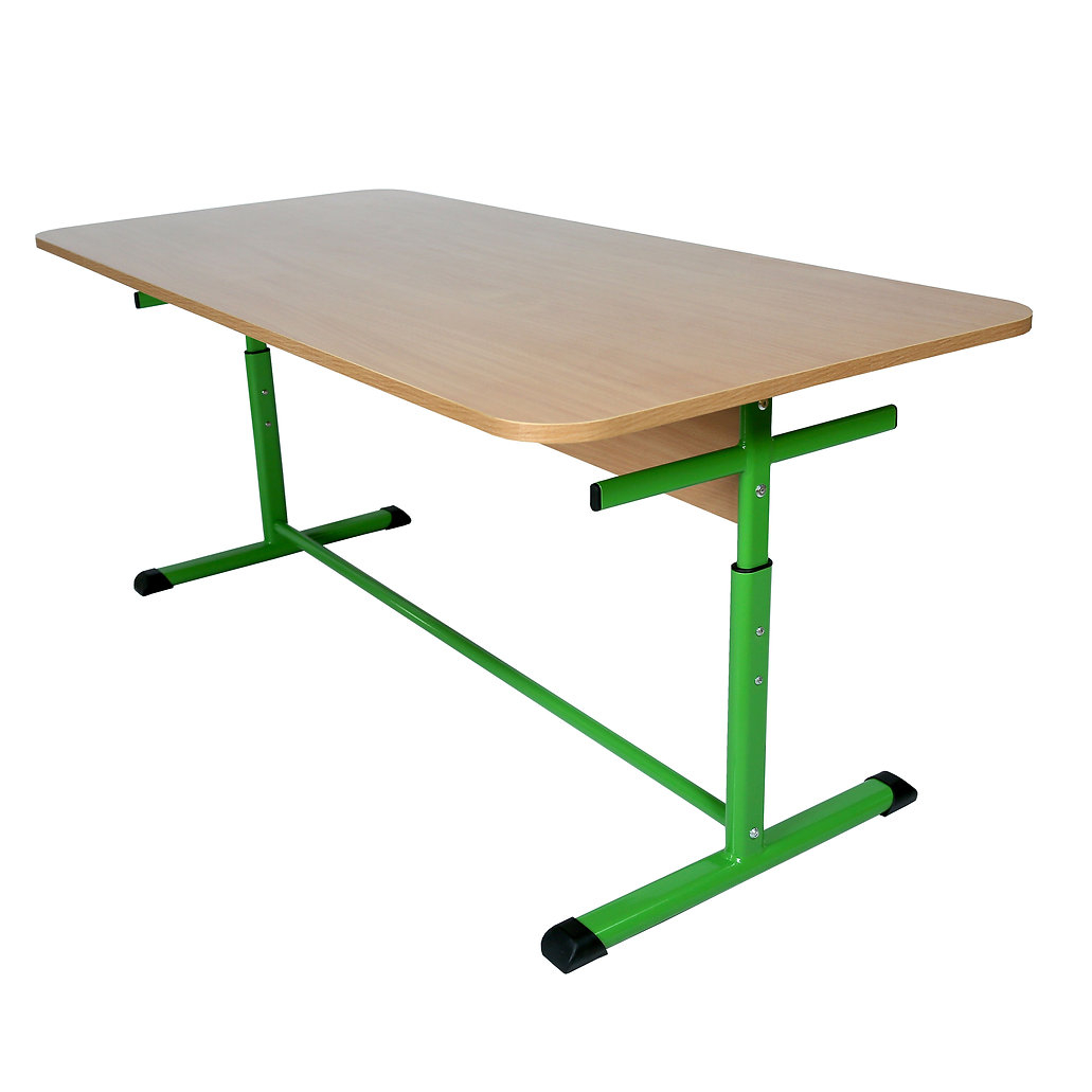 Masa pentru sălile de mese constă în așezate pe masă de formă dreptunghiulară cu dimensiunea de 1500 x 700 mm și ecranul dintre rafturile ramei metalice. Părțile din lemn ale mesei sunt realizate din plăci aglomerate laminate cu grosimea de 18 mm. Marginile tuturor elementelor din lemn sunt finisate cu bandă de margine din PVC de 2,0 mm și grosime de 0,5 mm. Părțile metalice ale mesei sunt realizate din tuburi plate ovale cu următoarele dimensiuni: 5030x 1,2 mm x 3820x 1,2 mm, 30151,2 mm și un tub pătrat de 20201,2 mm în dimensiune și au, de asemenea,  acoperire decorativă de protecție – pulbere email. Reglarea înălțimii mesei este implementată cu ajutorul șuruburilor de-a lungul găurilor cadrului și piciorului, între care este fixat manșonul de tranziție din plastic. Vârfurile din plastic sunt fixate la capetele cadrului pentru a preveni rănirea studenților și deteriorarea podelei.Culoarea plăcii: fag, stejar lăptos, gri. Culoare cadru: gri, verde, galben.