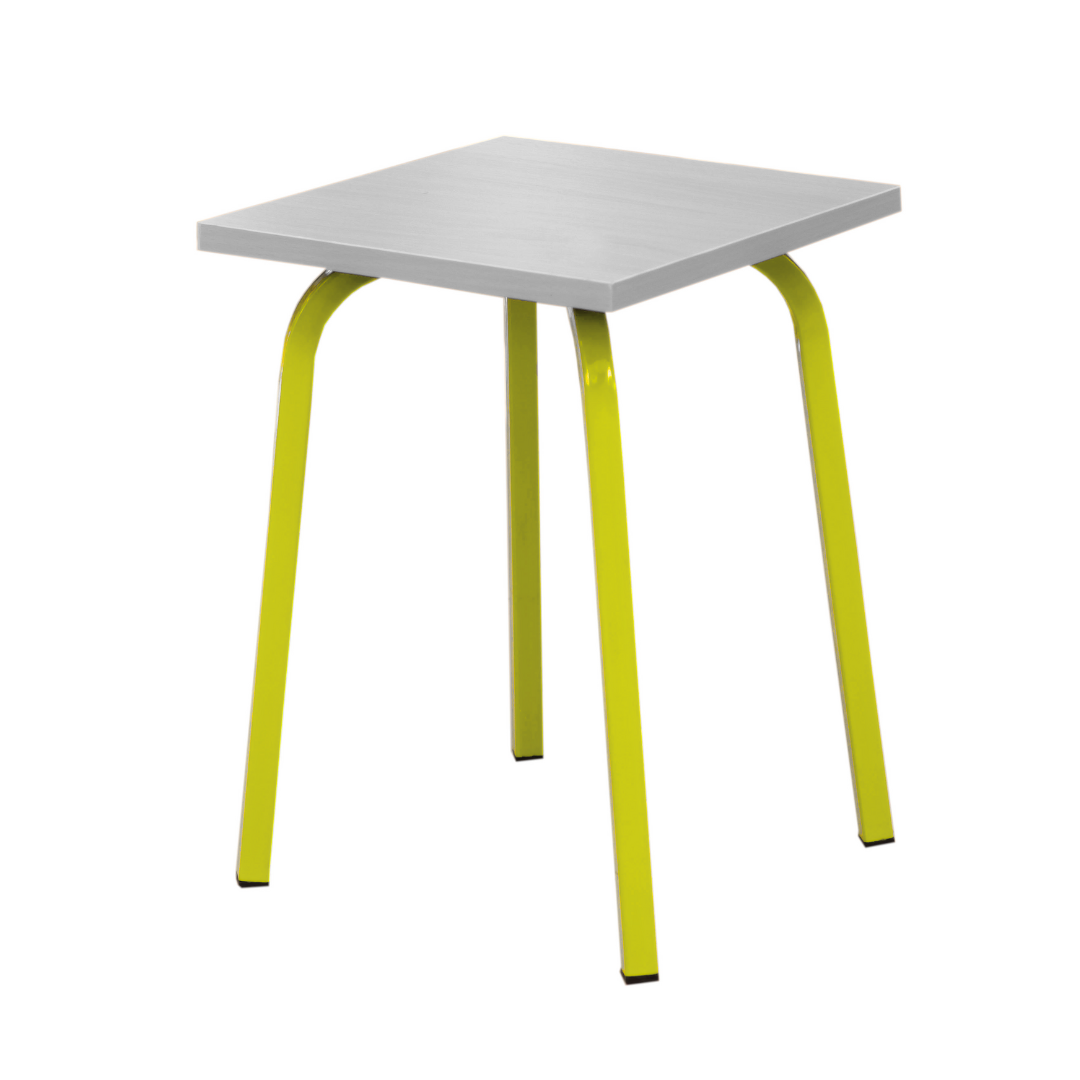 Cadrul este realizat dintr-un tub metalic pătrat de 20x20 mm în dimensiune. Cadrul metalic este acoperit cu materiale polimerice sub formă de pulbere. Scaunul este realizat din plăci aglomerate laminate cu grosimea de 18 mm. Marginile scaunului sunt finisate cu bandă de margine din PVC de 1 mm grosime.Culori de tablă: fag, stejar lăptos, gri. Culori cadru: gri, galben, verde.