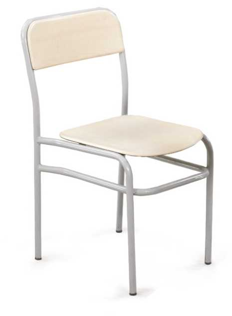 Scaunul din material Werzalit pentru școală și alte spații,  este alegerea perfectă, cu cadru argintiu elegant. Durabil, ușor de curățat și potrivit pentru interior și exterior.