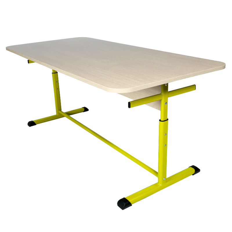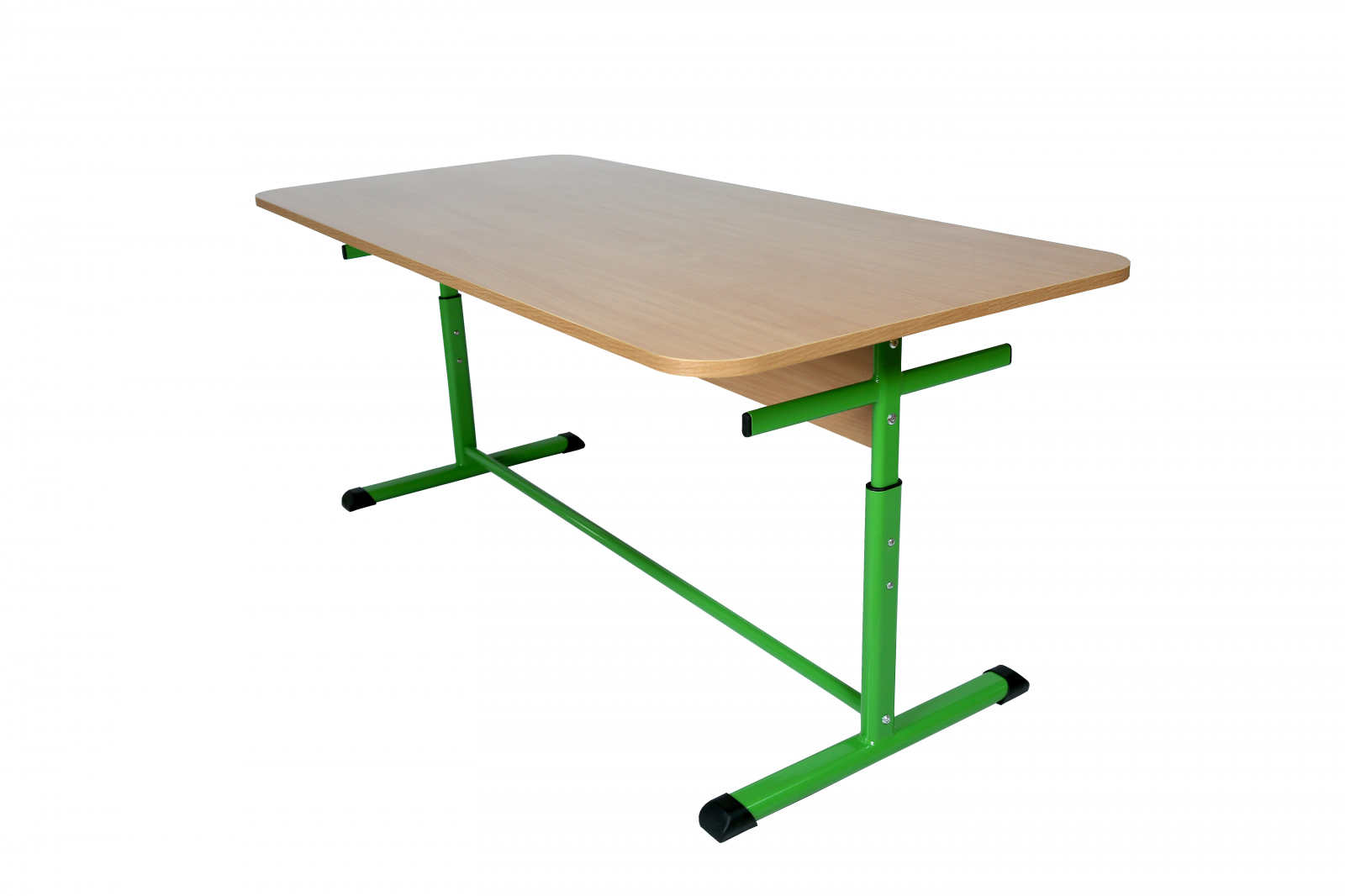 Părțile din lemn ale mesei sunt realizate din plăci aglomerate laminate cu grosimea de 18 mm. Marginile tuturor elementelor din lemn sunt finisate cu bandă de margine din PVC de 2,0 mm și grosime de 0,5 mm. . Reglarea înălțimii mesei este implementată cu ajutorul șuruburilor de-a lungul găurilor cadrului și piciorului, între care este fixat manșonul de tranziție din plastic. Vârfurile din plastic sunt fixate la capetele cadrului pentru a preveni rănirea studenților și deteriorarea podelei.Culori de tablă: fag, stejar lăptos, gri. Culori cadru: gri, galben, verde.