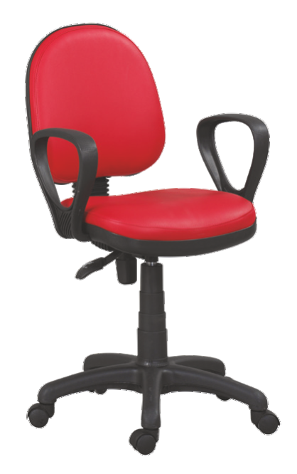 Scaune de birou, rotative, cu tapițerie din piele sintetică de culoare roșie. Ele au un design ergonomic, cu spătar și șezut căptușite, pentru confort sporit. Brațele sunt din plastic negru, la fel ca și baza, care este prevăzută cu roți pentru mobilitate. Aceste scaune sunt reglabile pe înălțime, fiind ideale pentru birouri sau spații de lucru.