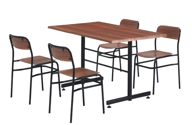Acest set format din masă și scaune este ideal pentru cantine sau săli de mese din școli, birouri sau alte instituții. Masa este dotată cu un cadru metalic robust și un blat din lemn durabil, oferind stabilitate și rezistență în utilizarea zilnică. Scaunele sunt ergonomice, cu cadru metalic și șezut din lemn, asigurând confort și ușurință în întreținere. Setul este practic și eficient, adaptabil pentru orice spațiu comun.